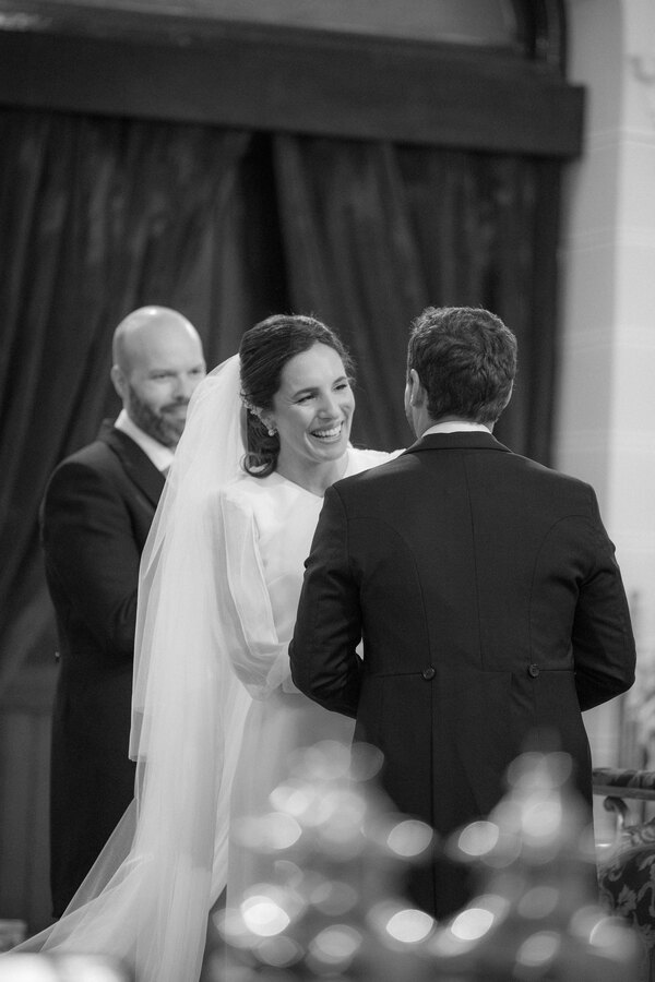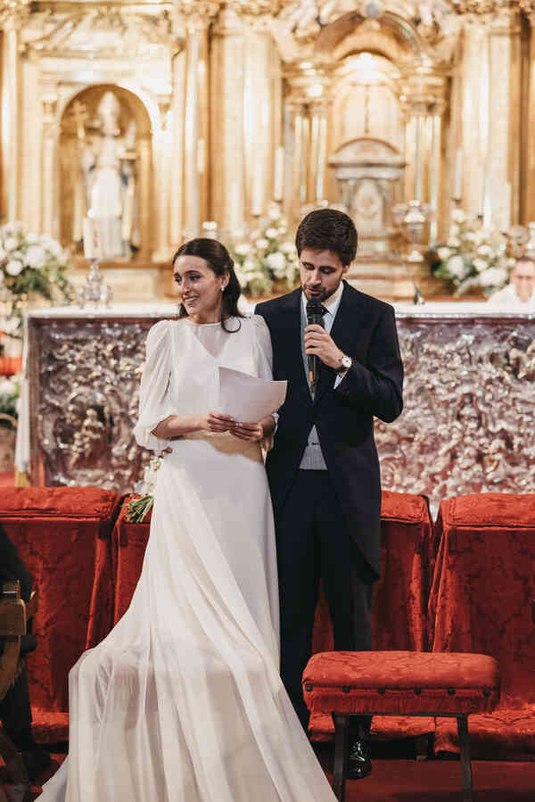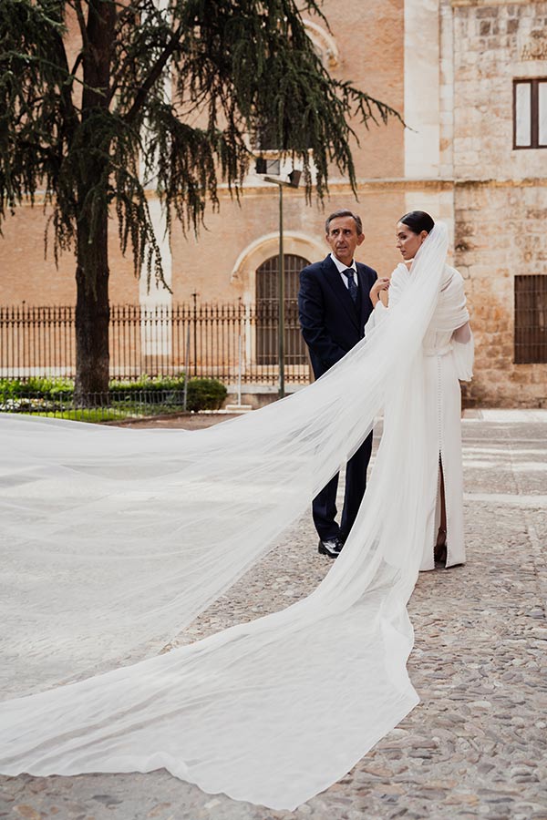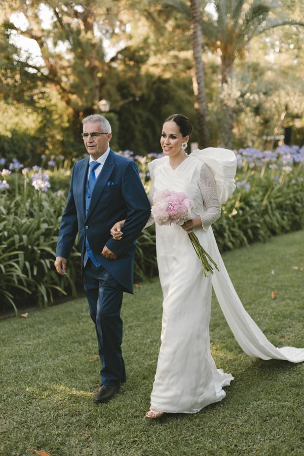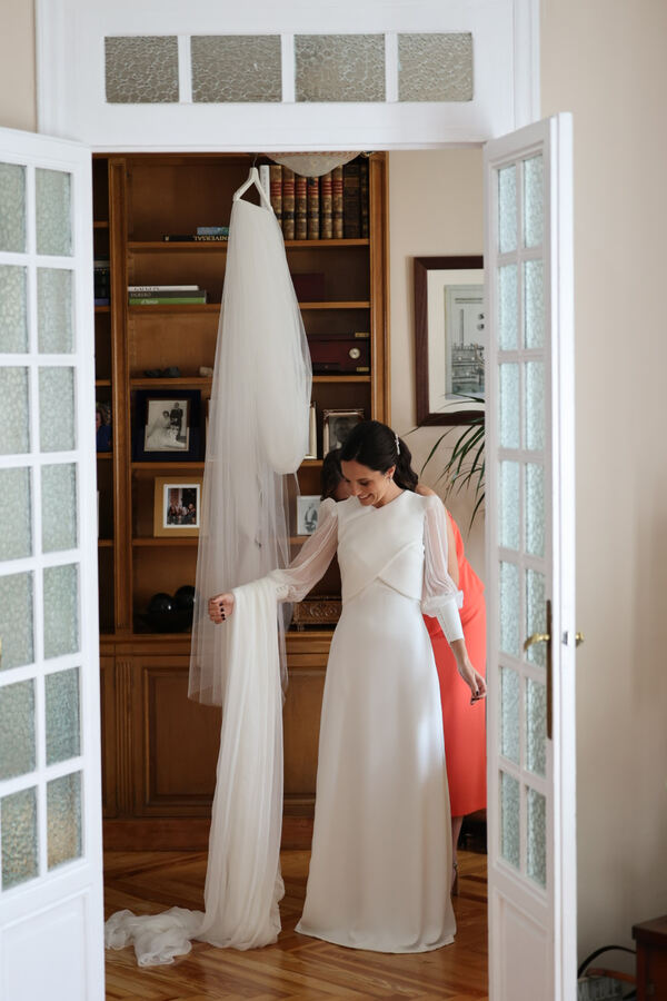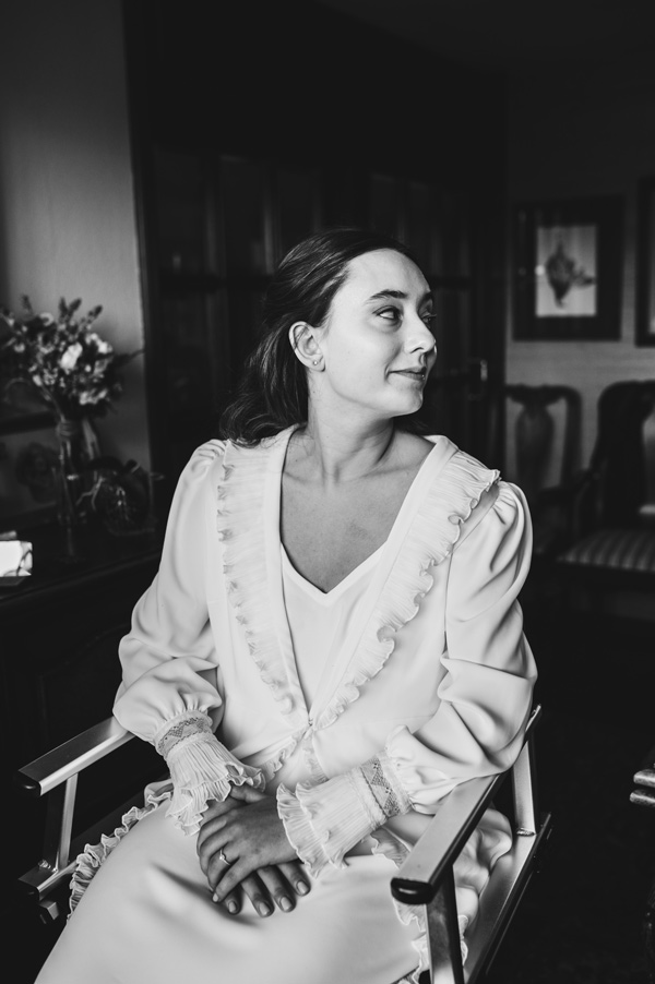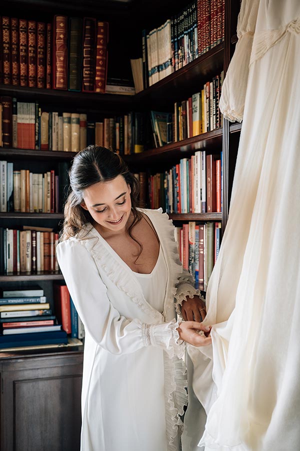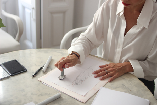 «En una primera cita conozco a la novia personalmente y hablamos de cuáles son sus deseos, vemos posibles materiales, colores, texturas etc. con ejemplos y muestras de tejidos en mi atelier. Es decir, la novia me inspira y yo me convierto en una especie de tamiz creativo.