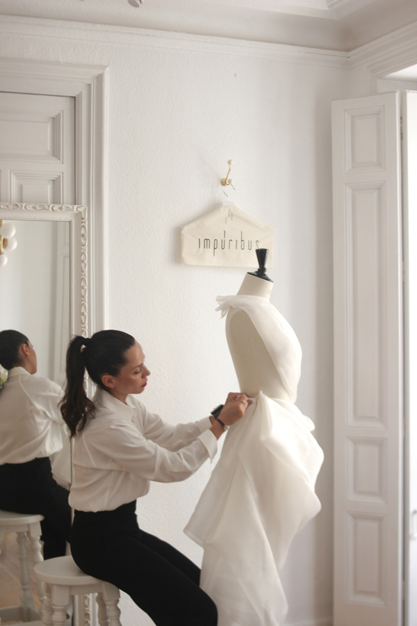 En Impúribus, el diseño, patronaje, corte y confección se realizan en nuestro propio taller, garantizando un control minucioso en cada etapa del proceso. Donde la precisión técnica y la calidad de los acabados son fundamentales. Cada pieza se trabaja con atención absoluta al detalle, asegurando un resultado que responde a los más altos estándares y a la singularidad de cada clienta.